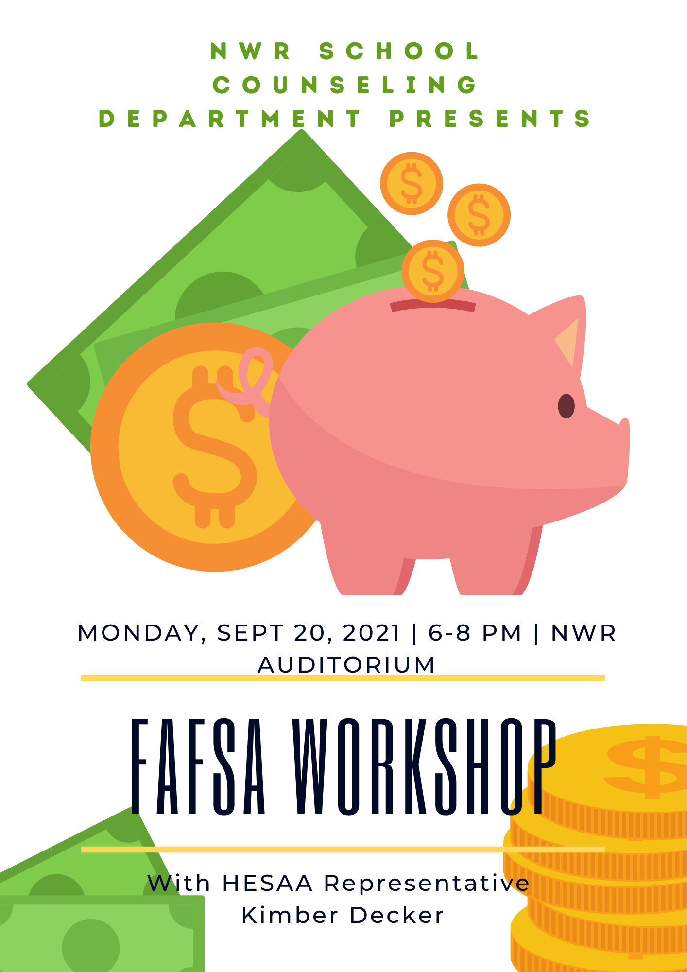 FAFSA Workshop – Monday 9/20/21 News & Announcements / By North Warren / September 16, 2021 … Read more FAFSA Workshop – Monday 9/20/21 Read More »