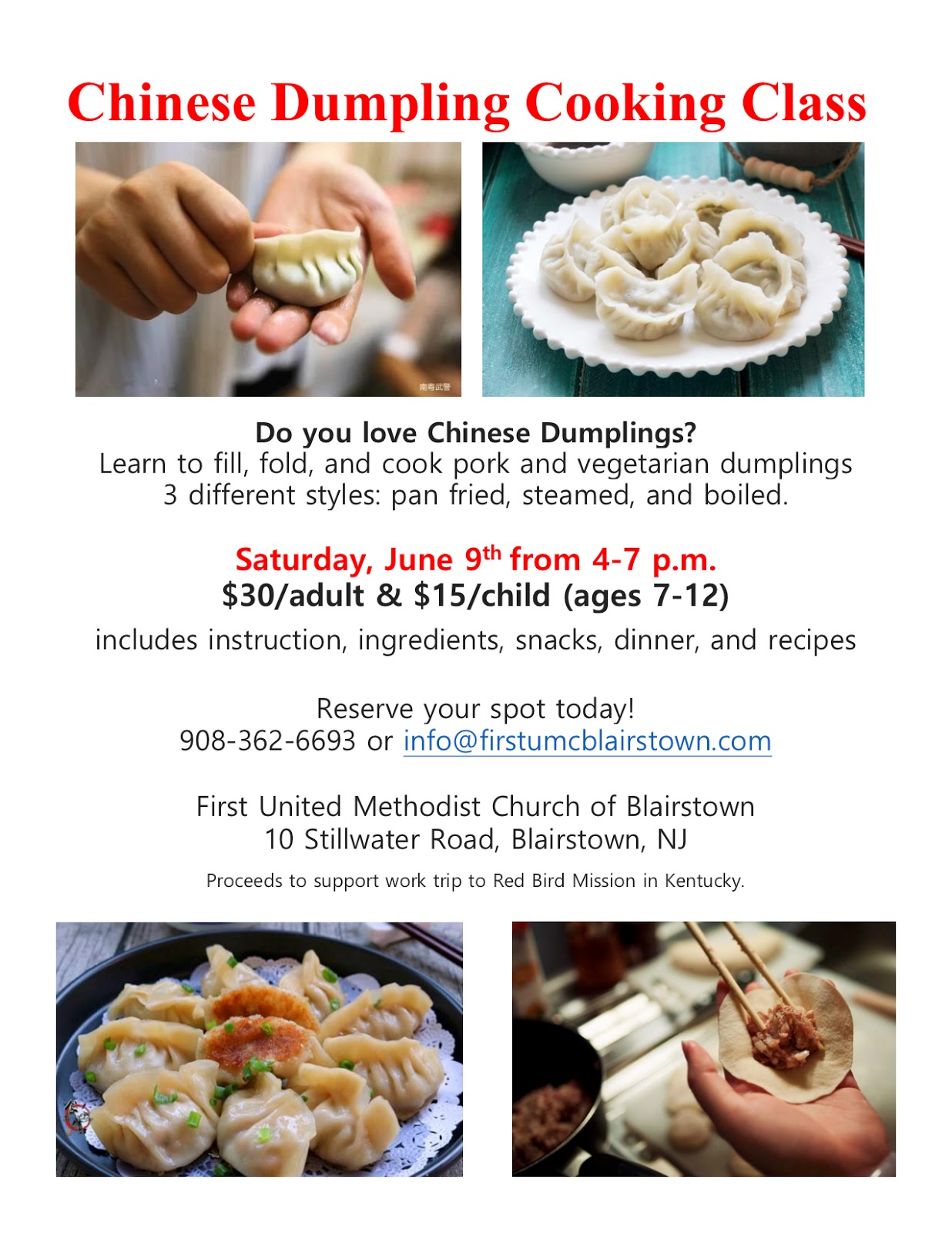 Chinese Dumpling Cooking Class: June 9, 4-7PM / News & Announcements / By North Warren News / June 01, 2018
