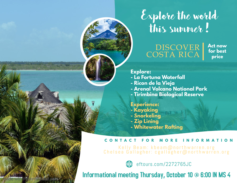 This summer the Travel Abroad Program will be going to Costa Rica!!