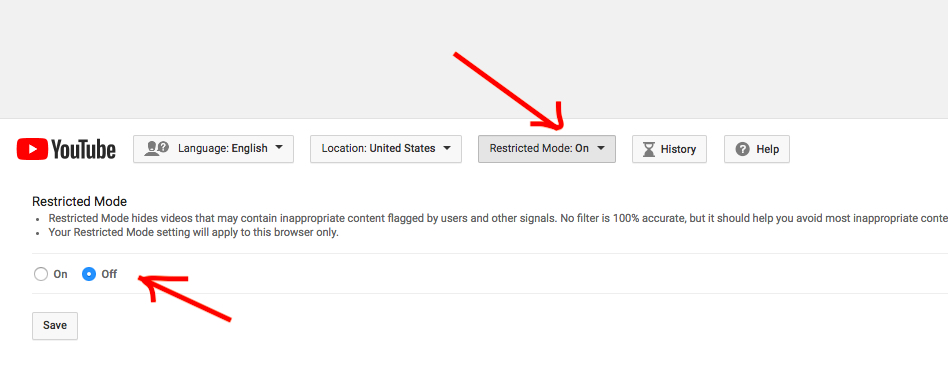 We will live stream our graduation on June 15th, 2018. The feed will become active shortly before the ceremony starts at 2:00PM. The feed will be available from the following link: https://www.youtube.com/watch?v=sbz5Y-y2tXY . You may need to disable restricted mode with YouTube: https://support.google.com/youtube/answer/174084?co=GENIE.Platform%3DDesktop&hl=en Scroll toward the bottom and change as indicated below. Unfortunately restricted mode is determined by YouTube’s algorithms, and we have no control over whether or not our stream is restricted.