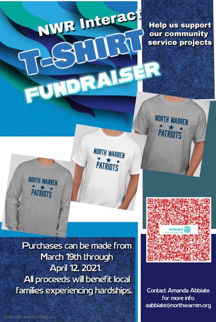 The North Warren Interact Club is holding a T-shirt fundraiser to support current community service projects. All proceeds will benefit local families through End Hunger as well as financial assistance. Please consider supporting our club’s efforts by sharing this information with others. The t-shirt fundraiser will be from 3/22 – 4/12/2021