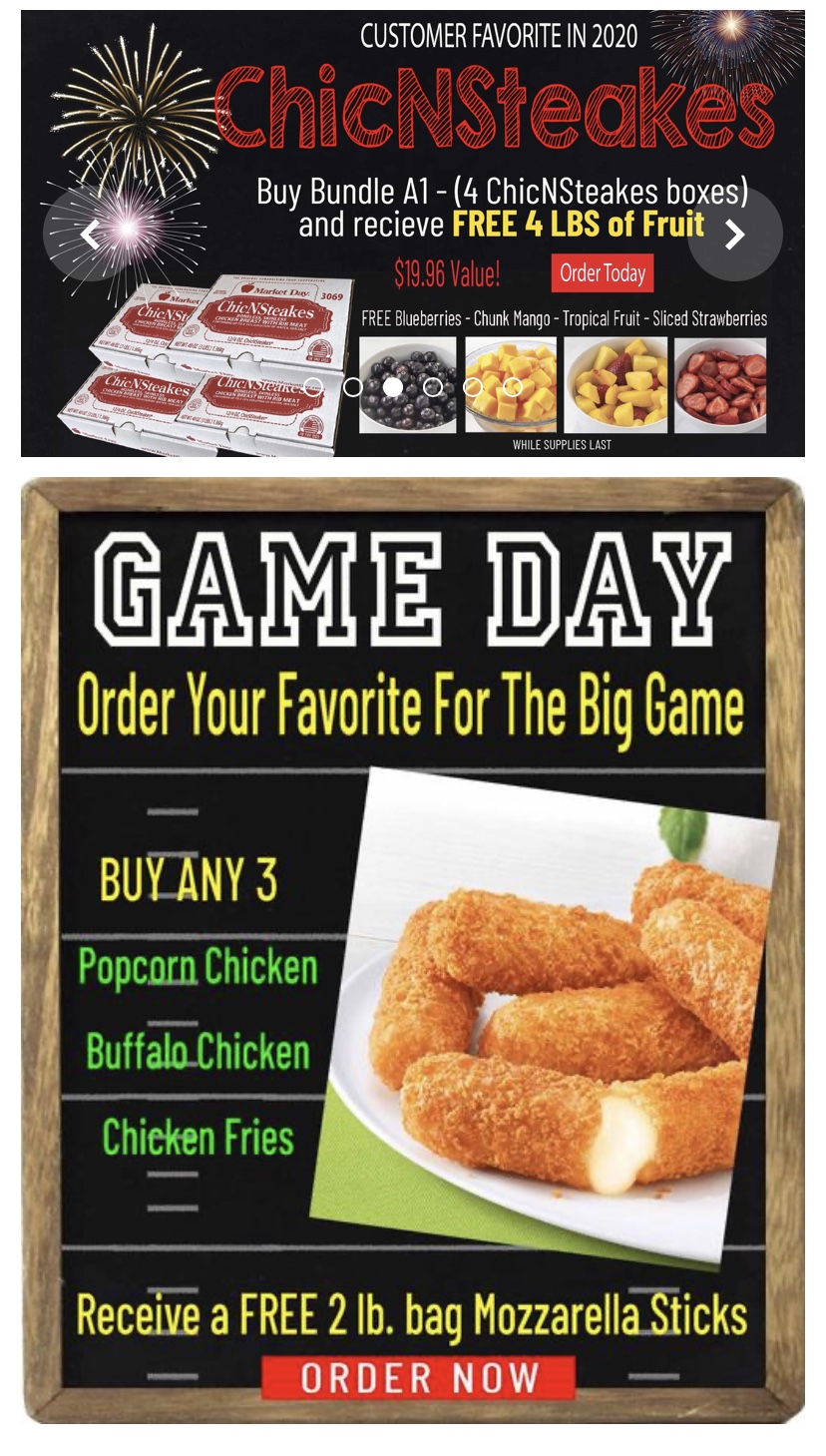 Two limited time offers to choose from! Go to marketdaylocal.com for more info on this, as well as the many new items that have been added recently. Log on today to see which are right for you! It will make mealtime easier and help the PTO at the same time. (10% of each purchase comes back when you select our school while ordering). **Recently added** Orders may be split and delivered to more than one address! Go in on an order with a friend or relative and bundle to quality for FREE SHIPPING Questions? Contact Kim Neeb at kimneeb@icloud.com